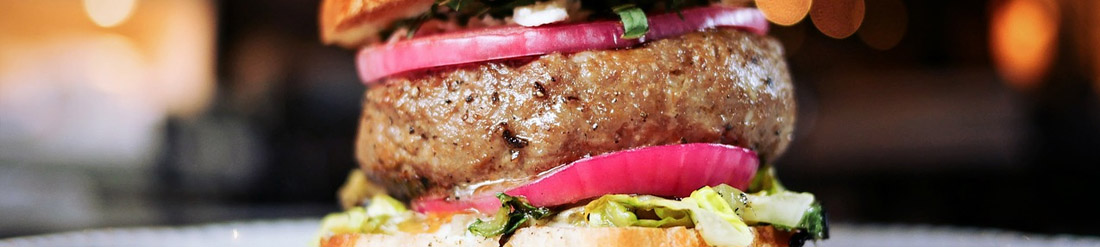 HAMBURGER mit Salat, Tomate, Gewürzgurken, Honigzwiebeln und Burgersauce